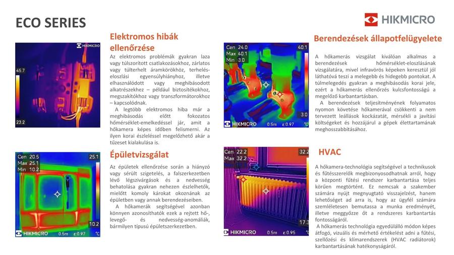 A vizuális és hőképek egyidejű, egy kattintással történő mentése hatékony munkafolyamatot és gyors vizsgálati jelentést tesz lehetővé.