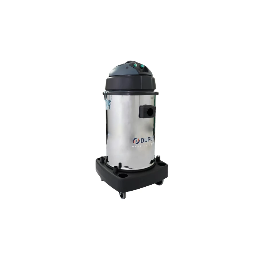 A porszívó egy 70 literes rozsdamentes acél tartályból áll, amely körülötte ütéscsillapító védelemmel van ellátva, és forgó kerekekkel rendelkezik.